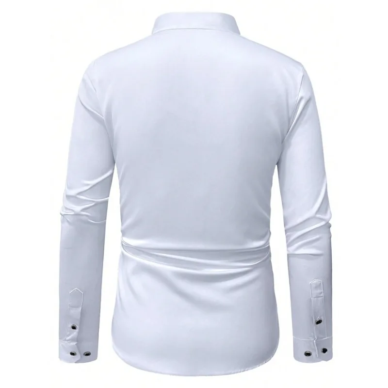 Men Dress Shirt Brand New Solid Color Long Sleeve Smart Casual White Elastic Mal